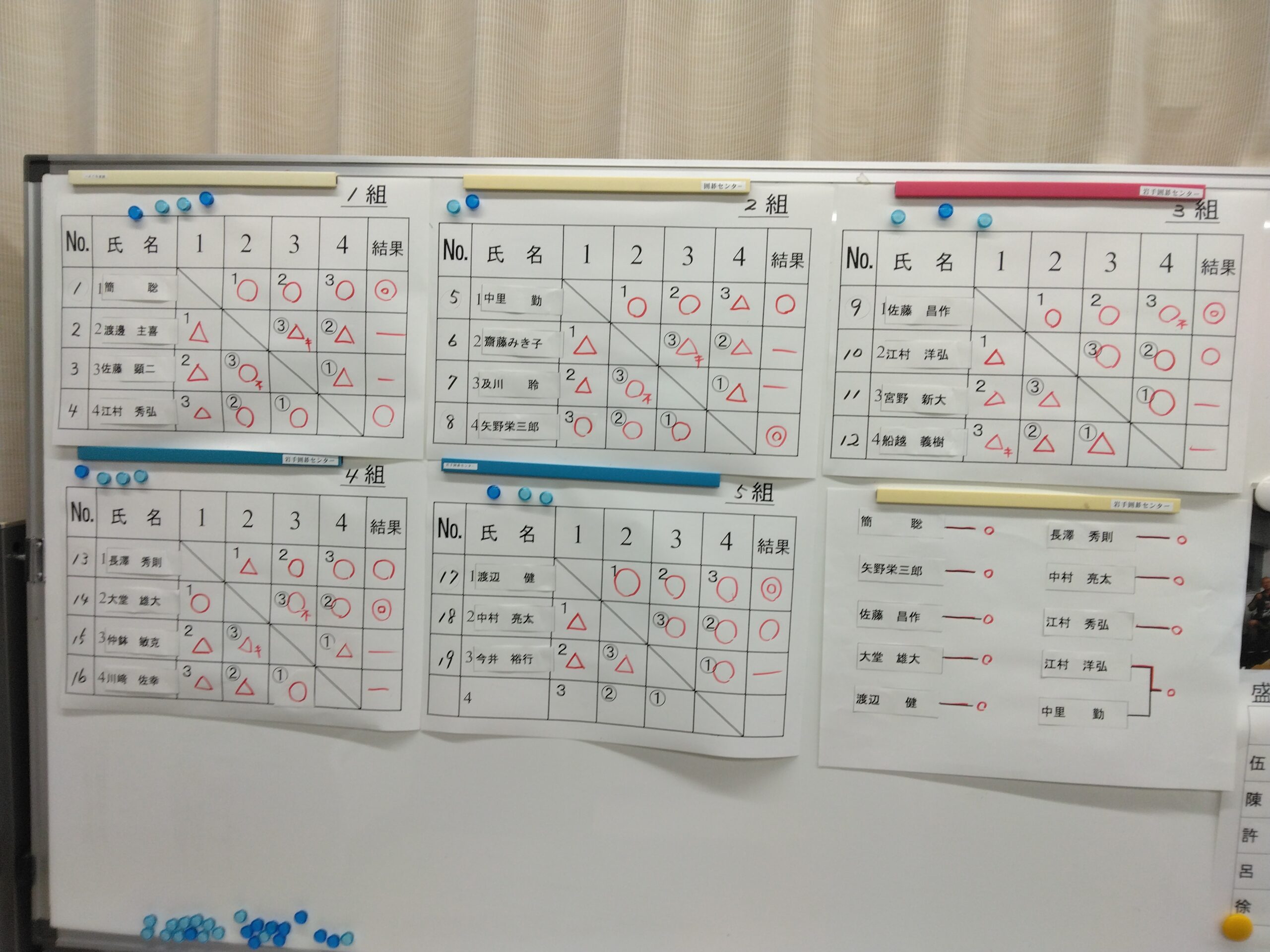 私は最初にくじを引いたのに1番を引いてしまい、Mら兄さん、S藤顕さんが居る厳しいリーグに入りました。