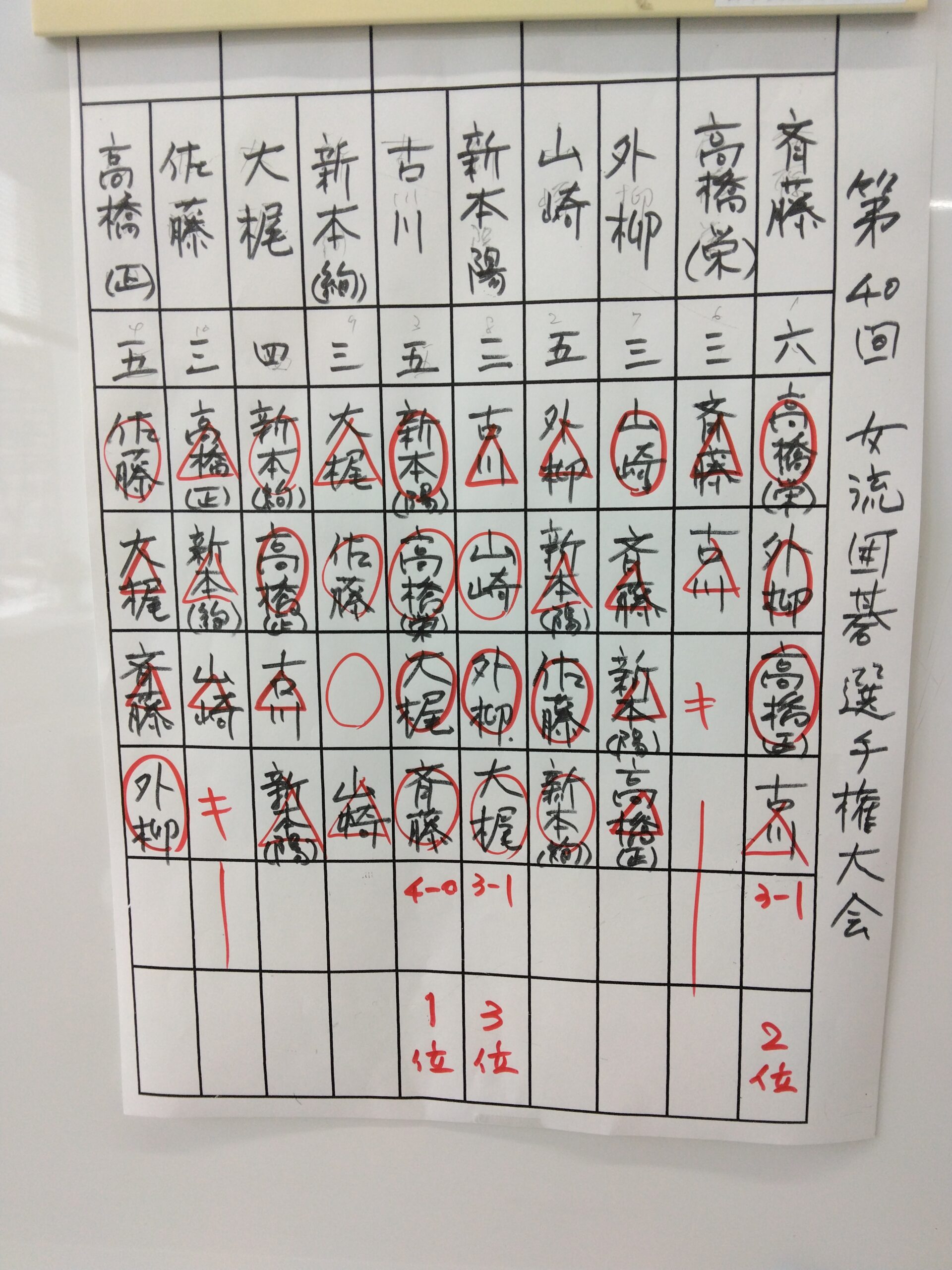 昨日行われた女流アマ選手権県大会の結果は以下の通りです。(敬称略)