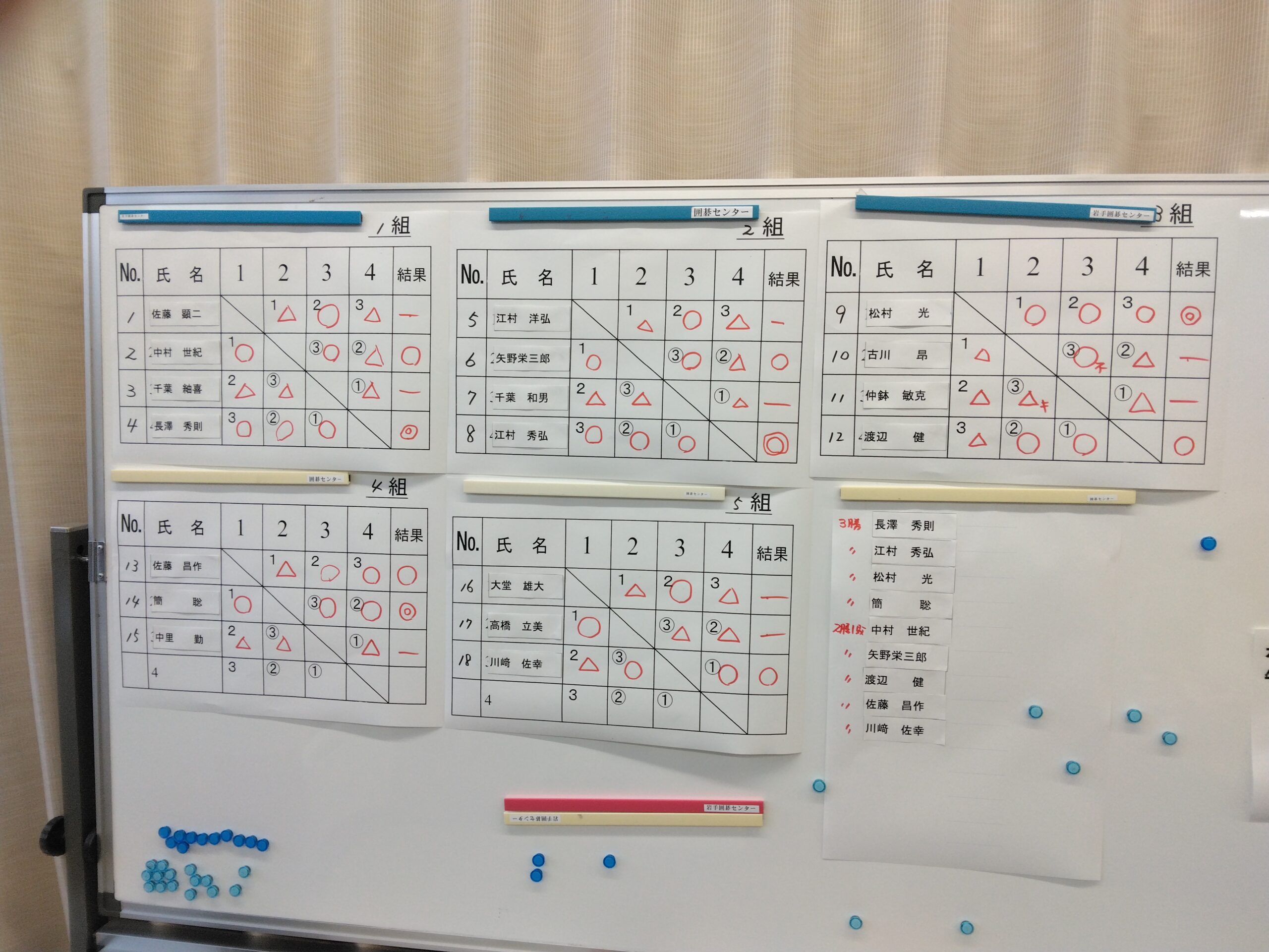 中村(世)、矢野、W辺、shosaku、川崎(以上2勝1敗者)